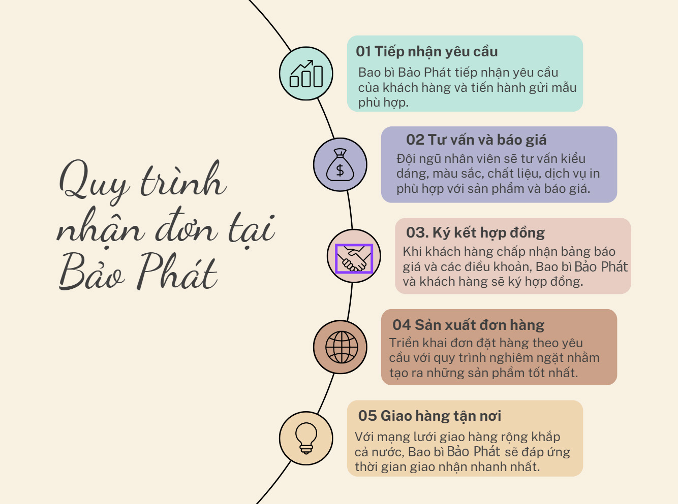 Bên cạnh đó, Bảo Phát còn chú trọng đến việc cải tiến công nghệ sản xuất và thiết kế, nhằm mang lại mẫu mã đẹp, tối ưu cho khách hàng. Với đội ngũ nhân viên chuyên nghiệp và tận tâm, công ty cam kết mang đến dịch vụ tốt nhất, đáp ứng mọi yêu cầu của khách hàng với giá thành rẻ nhất.